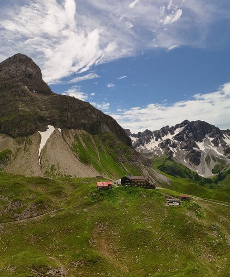 Die Belohnung wartet oben: Die Memminger Hütte liegt direkt über dem Seewisee, einem der fotogensten Bergseen der Alpen. Bei Sonnenaufgang spiegeln sich die umliegenden Gipfel perfekt im stillen, türkisblauen Wasser. Für Drohnenfotografie ist dieser Spot der absolute Höhepunkt des E5 – ich habe hier bei Sonnenaufgang einige der besten Luftaufnahmen meiner gesamten bisherigen Reisen gemacht.
