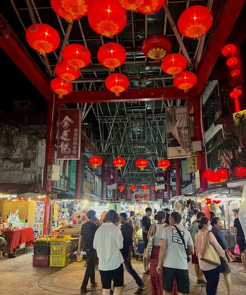 Der rückseitig belichtete CMOS-Sensor (BSI) liefert eine exzellente High-ISO-Performance. Bis ISO 3200 sind die Bilder praktisch rauschfrei, bis ISO 6400 für Social Media absolut brauchbar, und selbst ISO 12800 lässt sich in Lightroom mit der AI-Rauschreduzierung noch retten. Das bedeutet: In Restaurants, bei Nachtmärkten, in schlecht beleuchteten Moscheen — überall, wo kein Blitz erlaubt ist — liefert die Vollformatkamera brauchbare Ergebnisse.