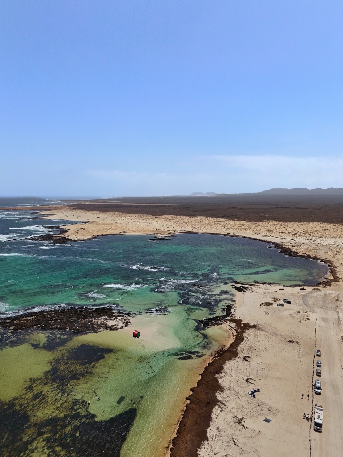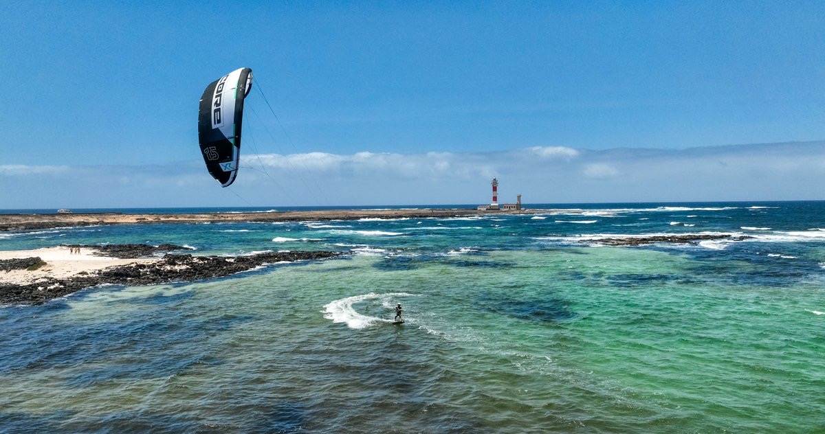 Sotavento, Fuerteventura (Spain): My personal favorite and the best beginner spot in Europe. At low tide, a huge lagoon forms with knee-deep water—perfect for practicing. Consistent trade winds from April to September. Course: 3 days from €280.