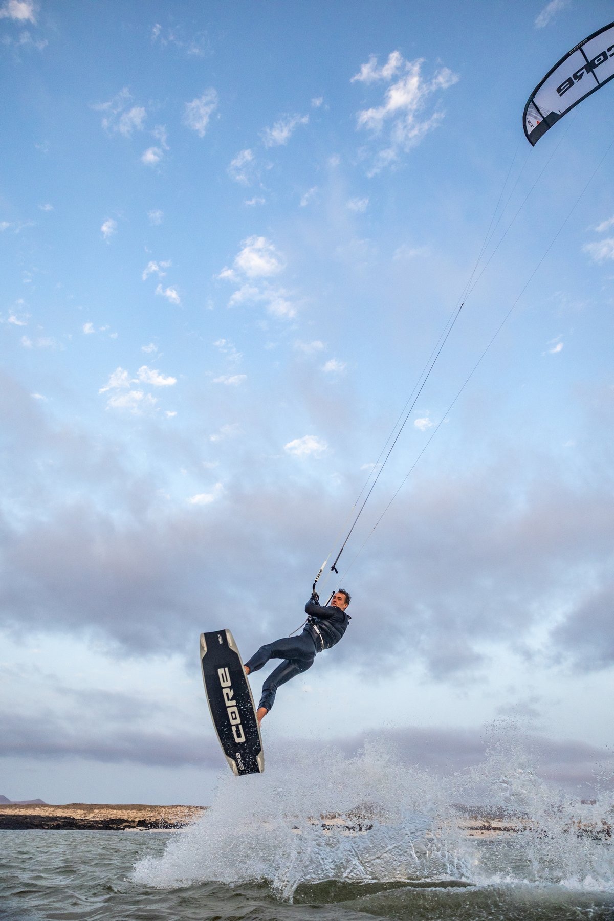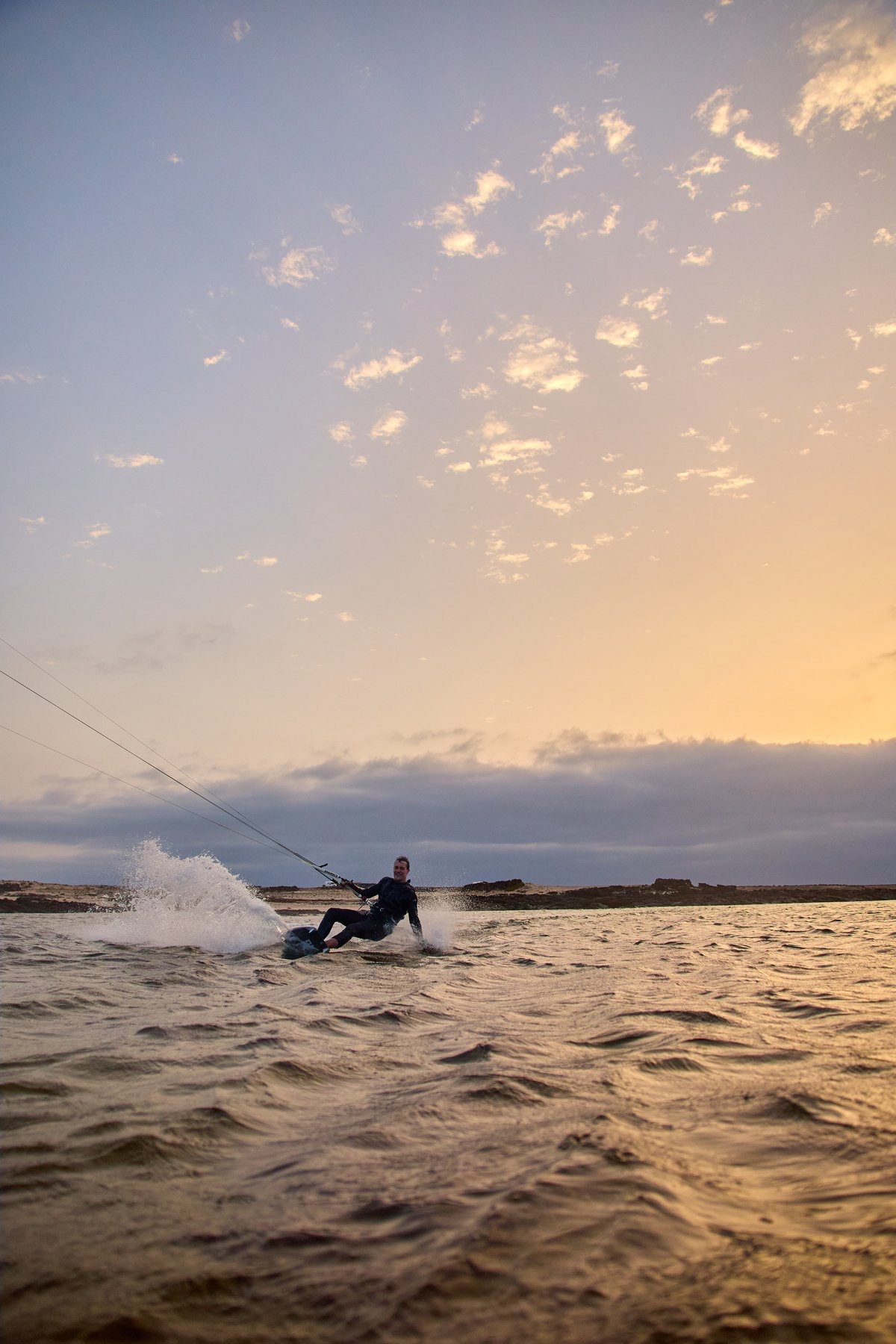 A moderate level of fitness is sufficient. You should be able to swim for 30 minutes and have basic core stability. The power comes from the kite, not from you. You'll still be tired after a kite session—mainly due to the concentration required and the contact with the water.